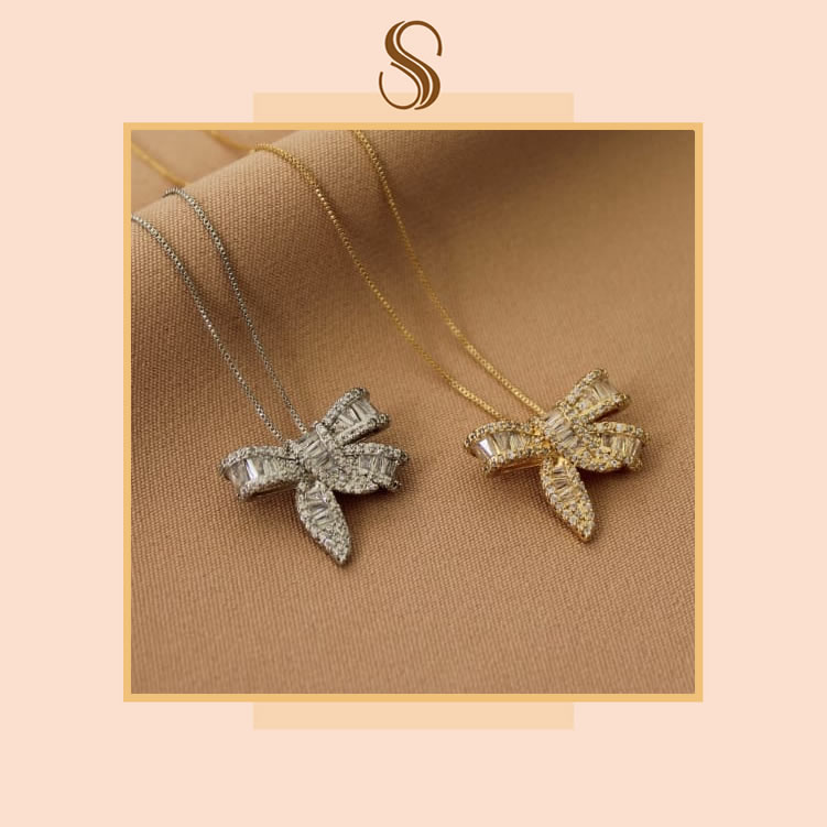 Colar laço cravejado dourado