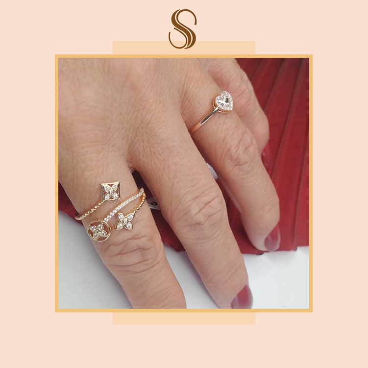 Anel coração em zircônia e cravejado